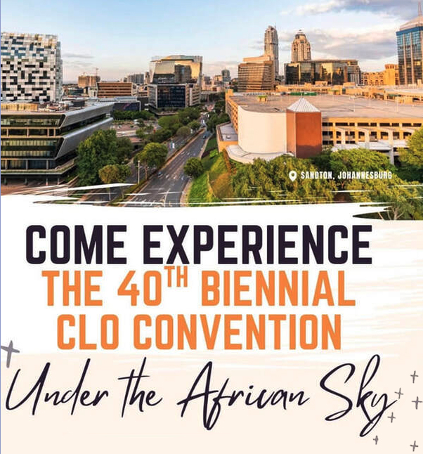 The 40th CLO Biennial Convention is scheduled for August 8-11, 2027,in the Sandton Convention Centre, Johannesburg, South Africa! Please check back for registratioin details as they become available.